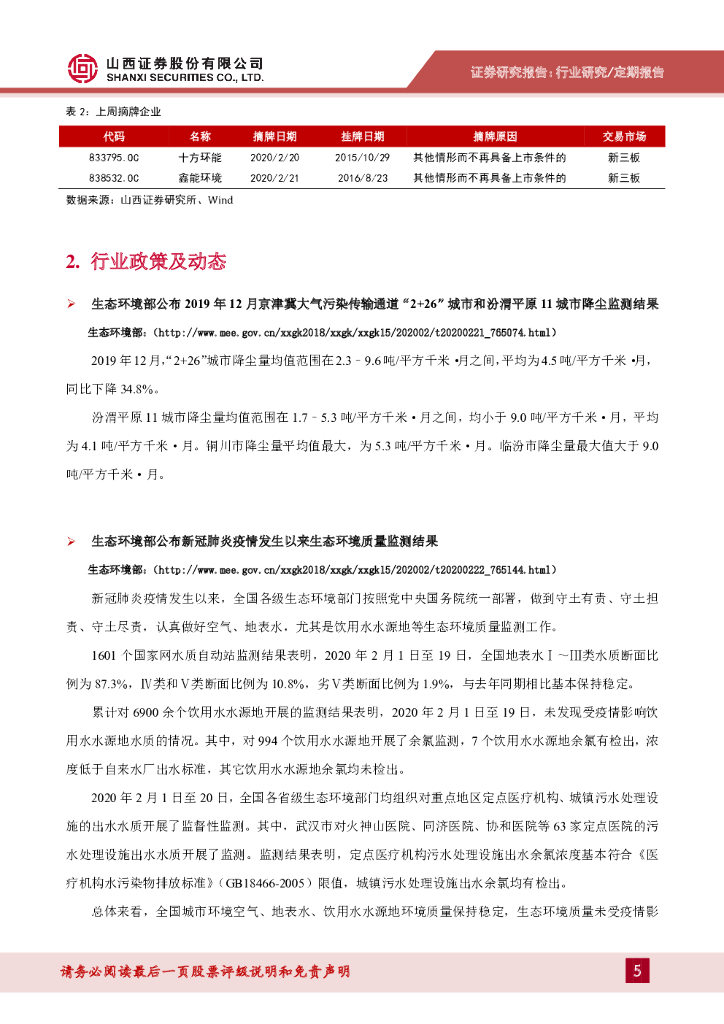 山西证券:环保(含新三板)行业周报:生态环境质量未受疫情影响.pdf