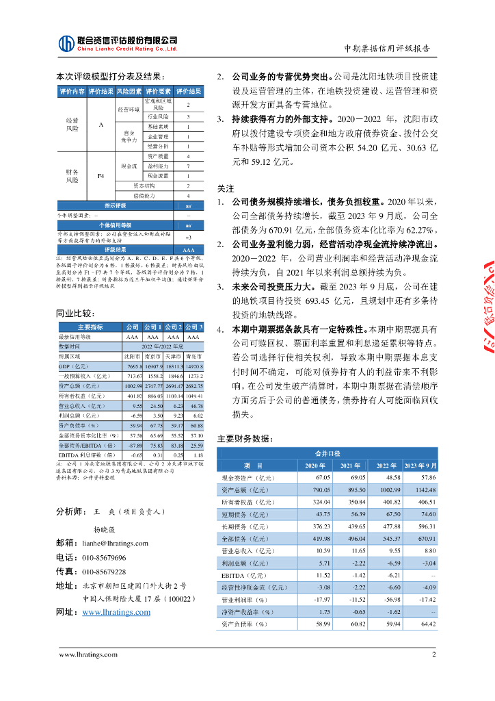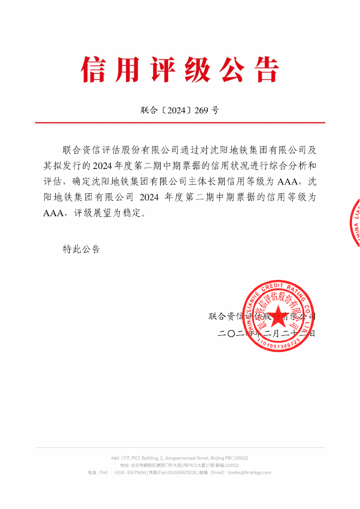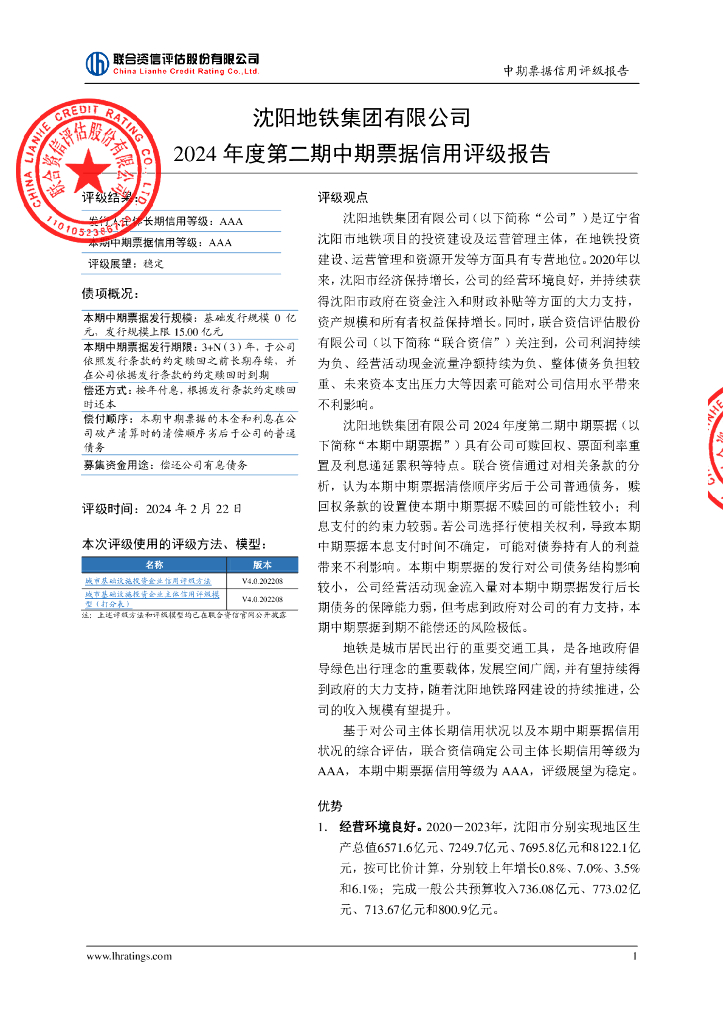 联合资信:沈阳地铁集团有限公司2024年度第二期中期票据信用评级报告.pdf