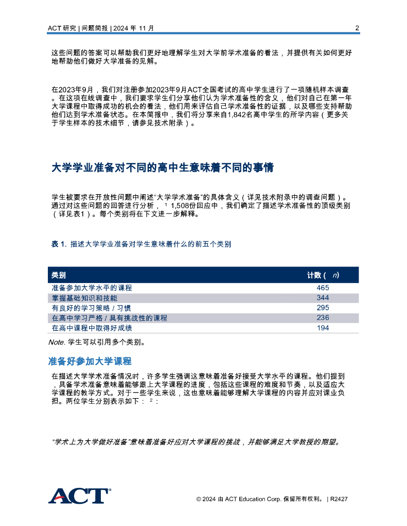 ACT Education Corp:2024年高中生对大学学业准备的看法报告.pdf