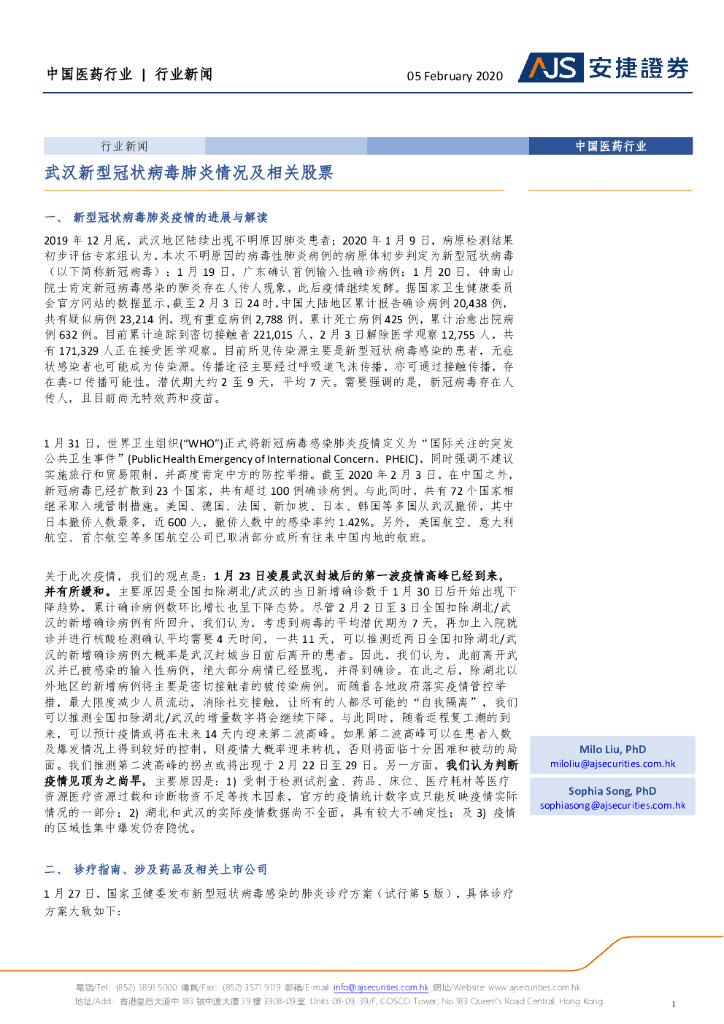 安捷证券:中国医药行业:武汉新型冠状病毒肺炎情况及相关股票.pdf