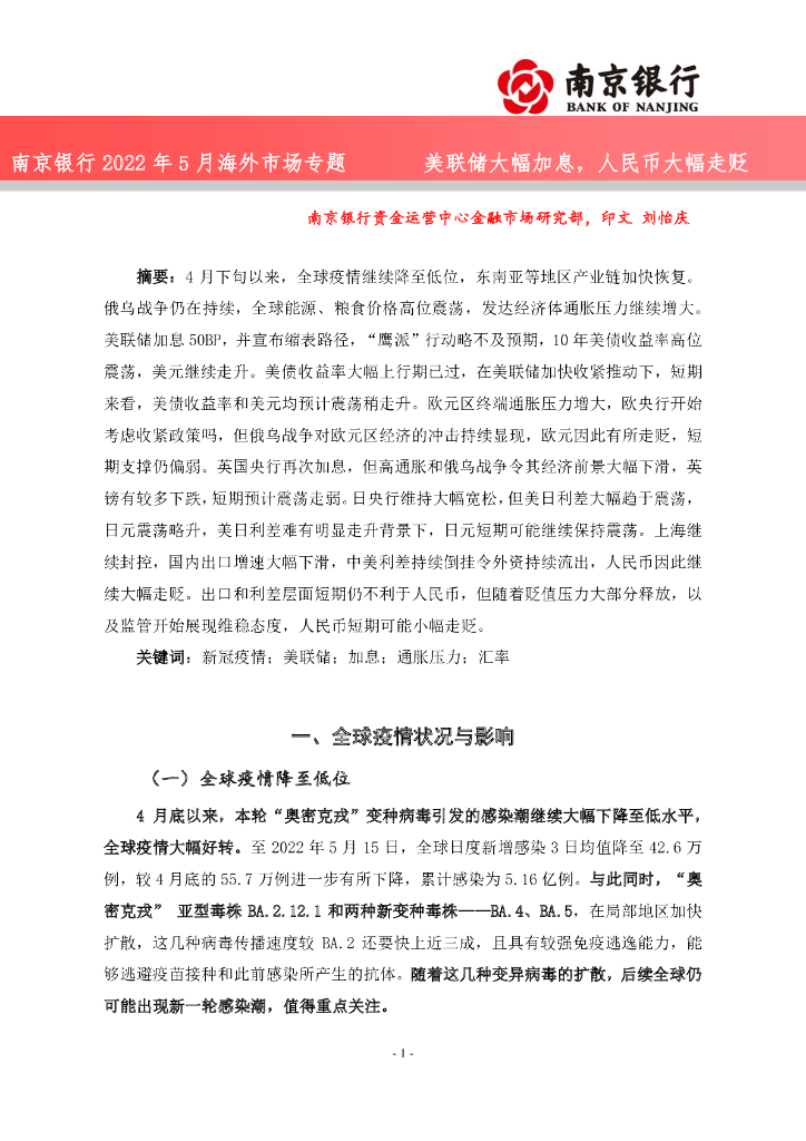 南京银行:美联储大幅加息,人民币大幅走贬-2022年5月海外市场专题.pdf