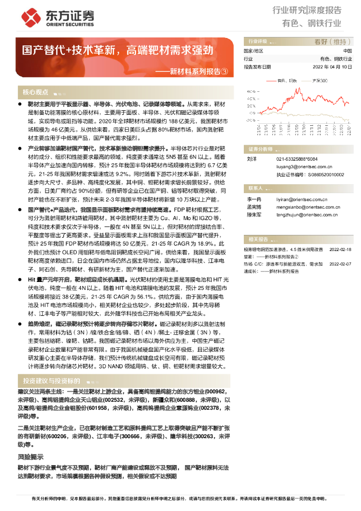 东方证券:有色、钢铁行业:新材料系列报告③-国产替代+技术革新,高端靶材需求强劲.pdf