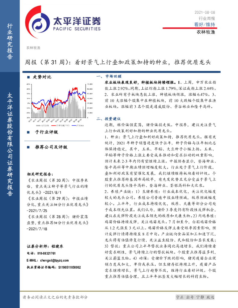 太平洋证券:农林牧渔周报(第31周):看好景气上行叠加政策加持的种业,推荐优质龙头.pdf