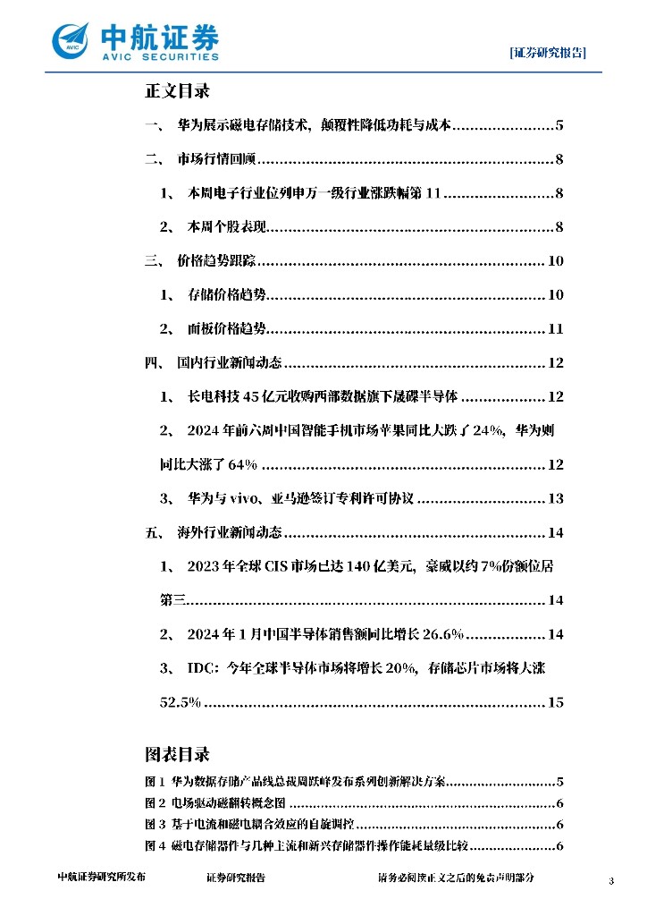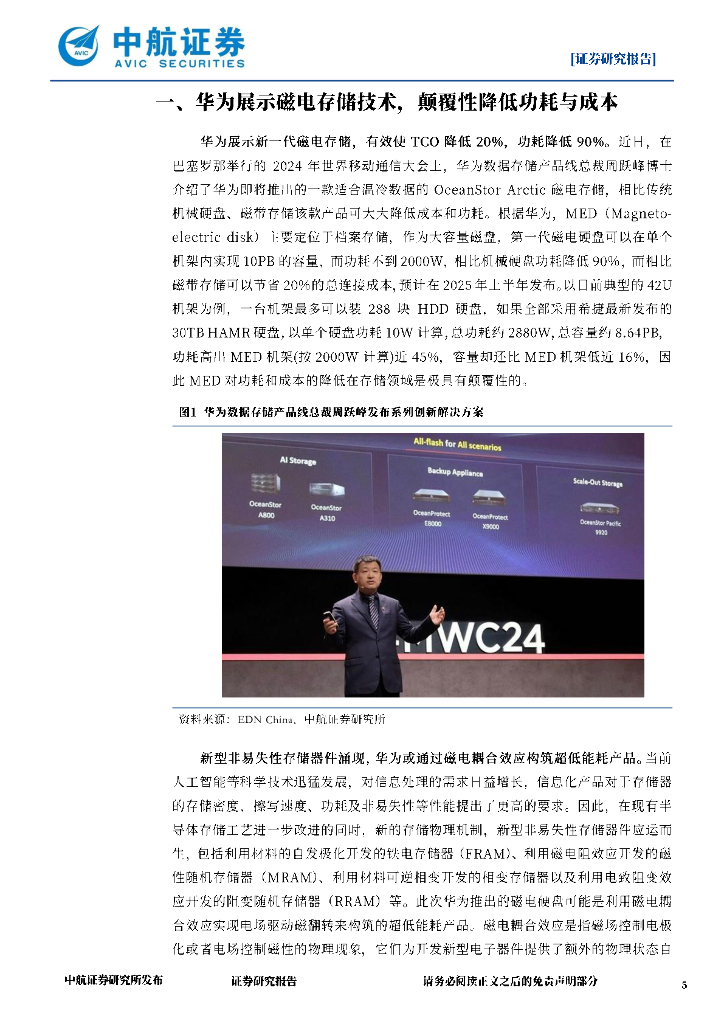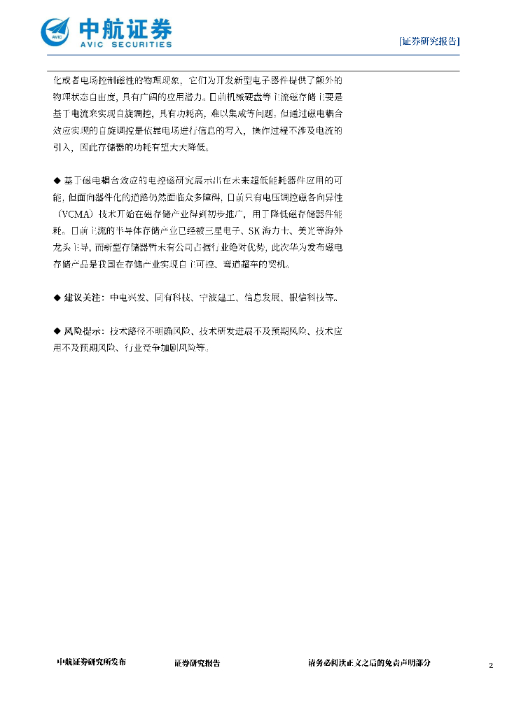 中航证券:电子行业周报:华为展示磁电存储技术,颠覆性降低功耗与成本.pdf