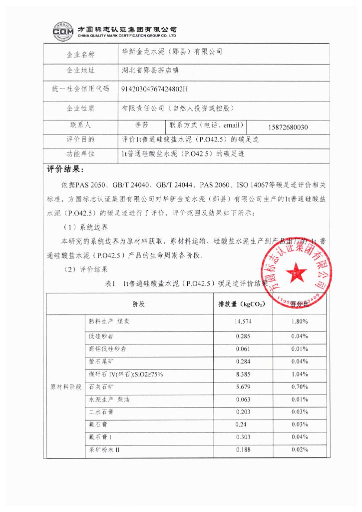 华新金龙水泥(郧县)有限公司产品碳足迹评价报告.pdf