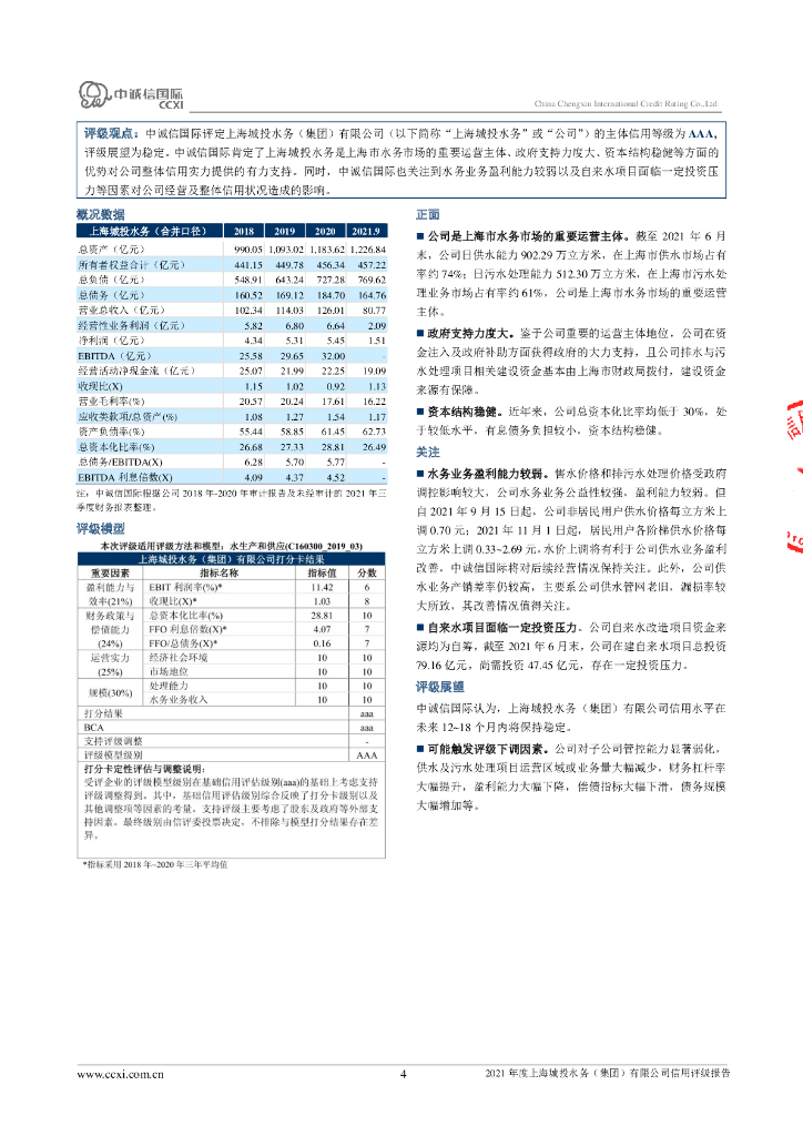 中诚信:上海城投水务(集团)有限公司2021年度主体信用评级报告.pdf