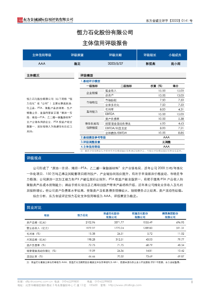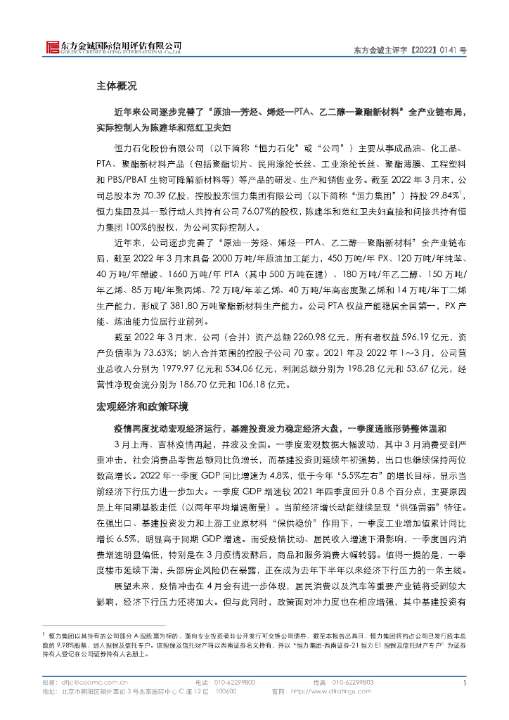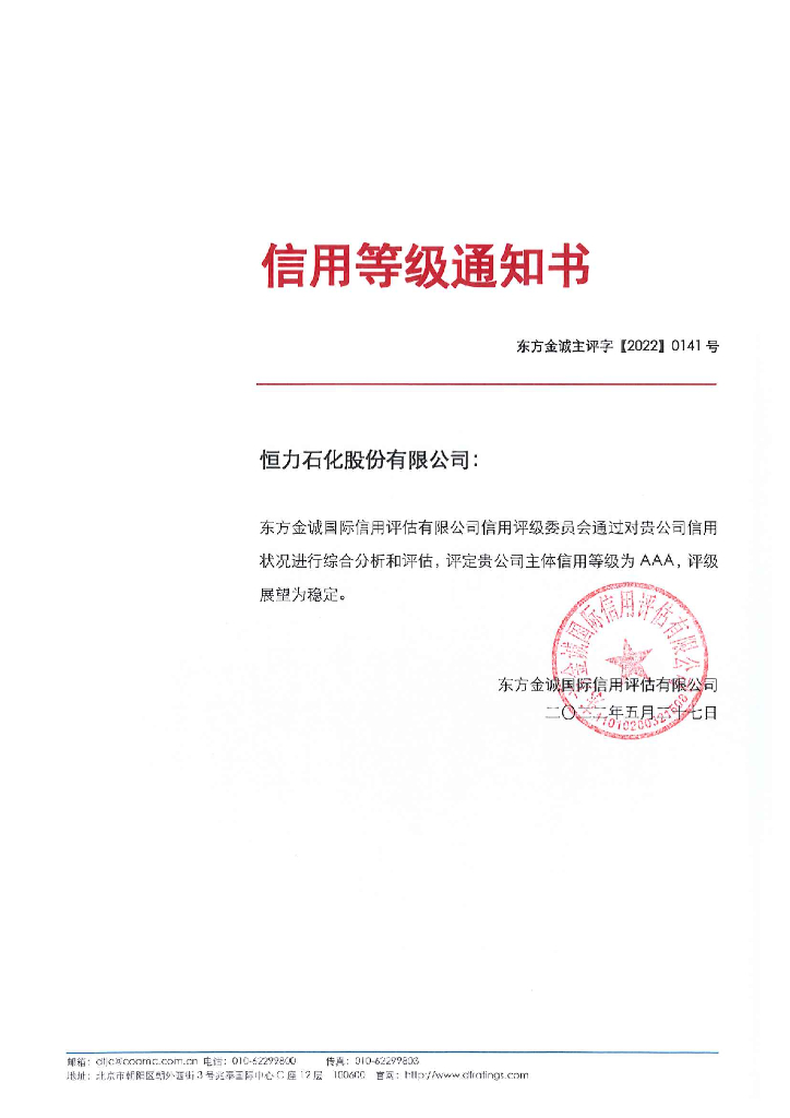 东方金诚:恒力石化股份有限公司主体信用评级报告(更新).pdf