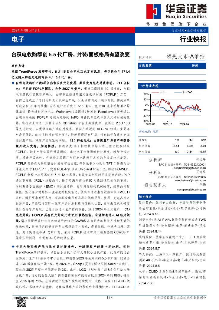 华金证券:电子:台积电收购群创5.5代厂房,封装/面板格局有望改变.pdf