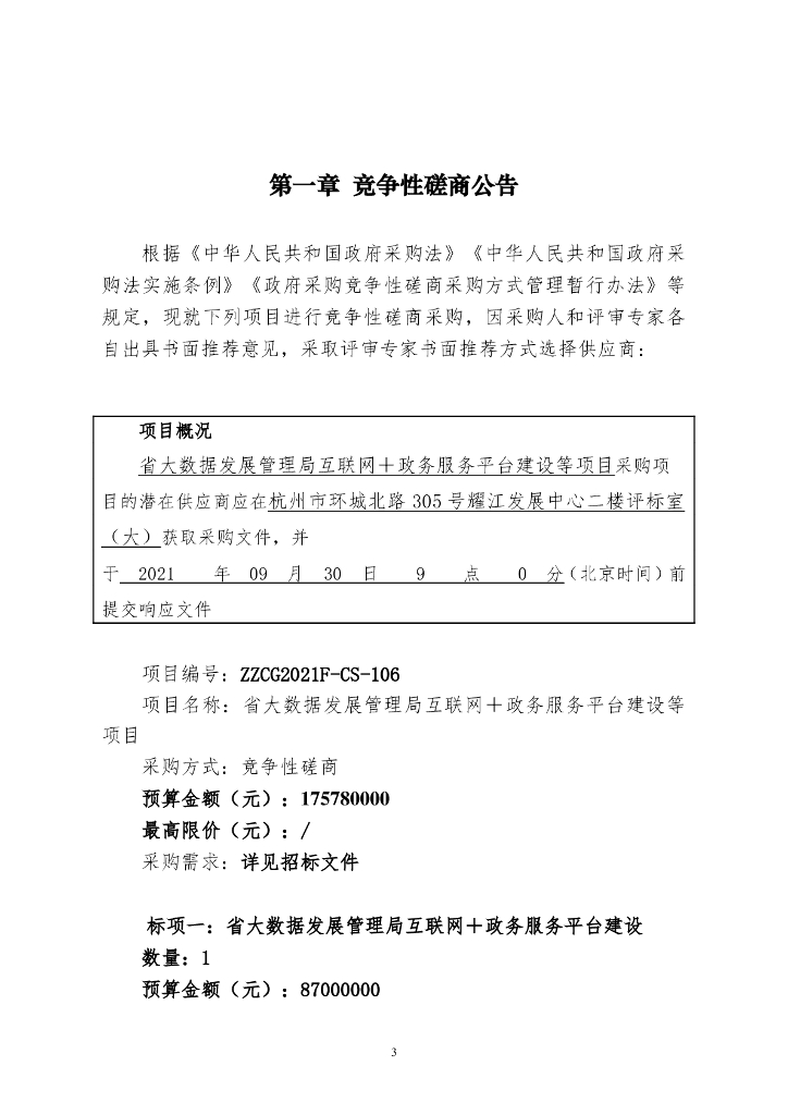 浙江省大数据发展管理局互联网+政务服务平台建设等项目采购文件.pdf