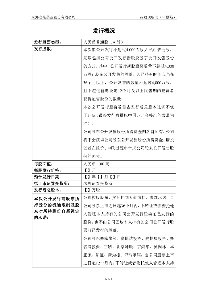 珠海赛隆药业股份有限公司深交所主板IPO上市招股说明书.pdf