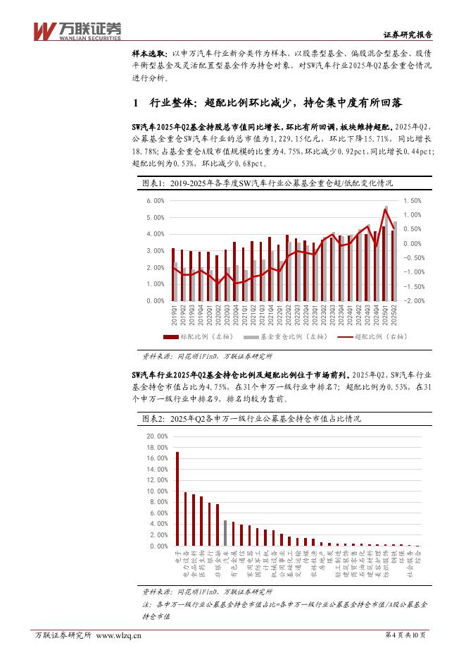 万联证券:汽车行业2025Q2基金持仓分析报告:2025Q2汽车行业基金重仓超配比例环比减少.pdf