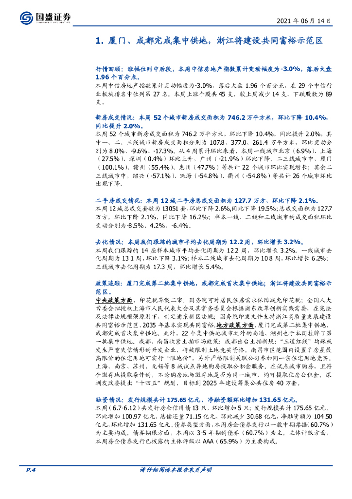 国盛证券:房地产开发行业周报:厦门、成都完成集中供地,浙江将建设共同富裕示范区.pdf