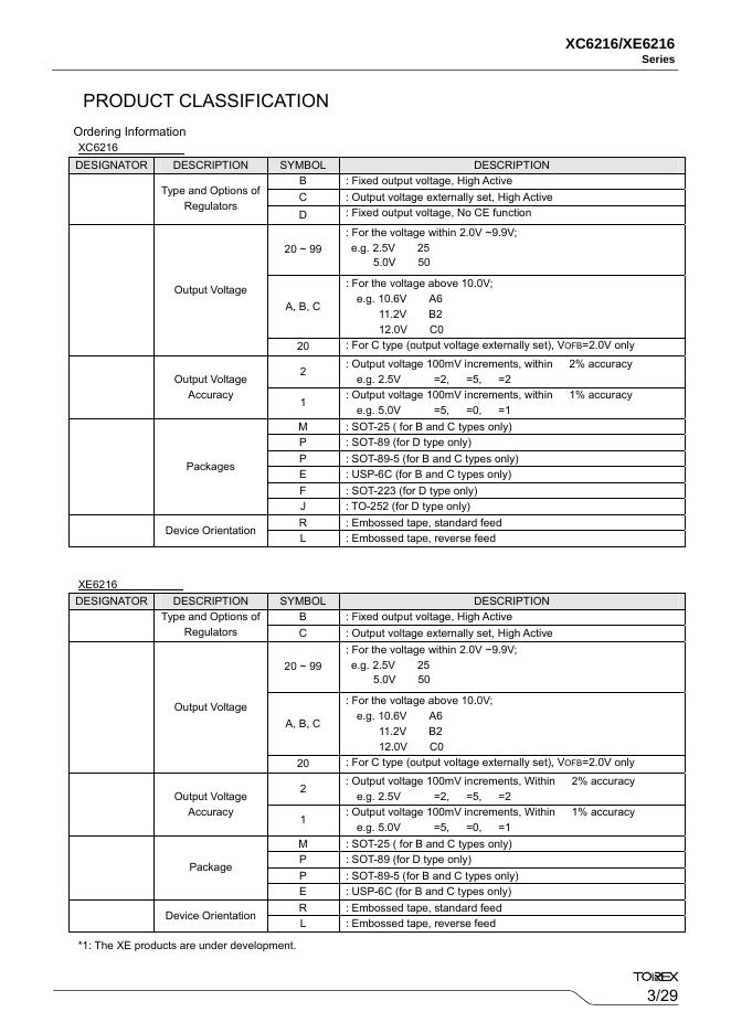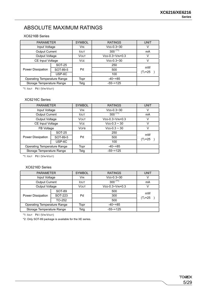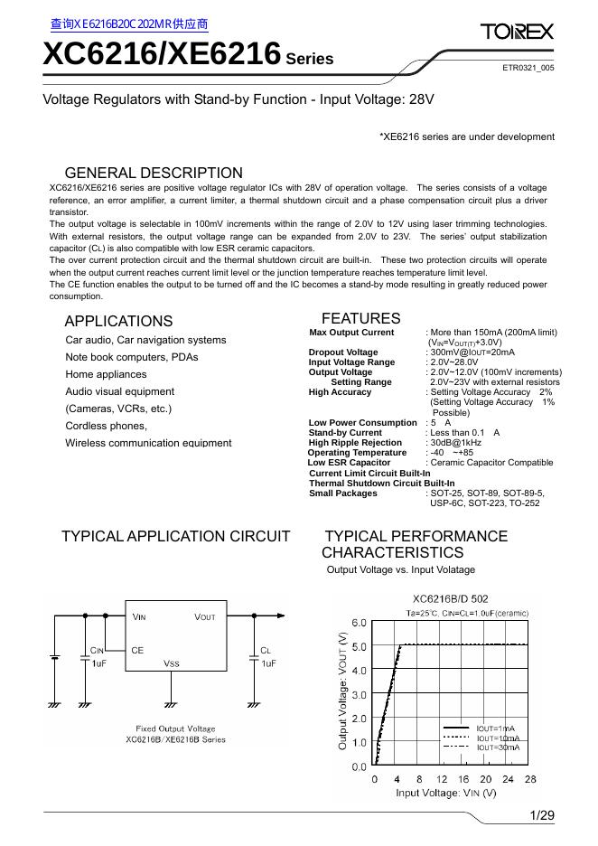 TOREX XC6216/XE6216Series Voltage Regulators with Stand-by Function - Input Voltage: 28V 数据手册.pdf