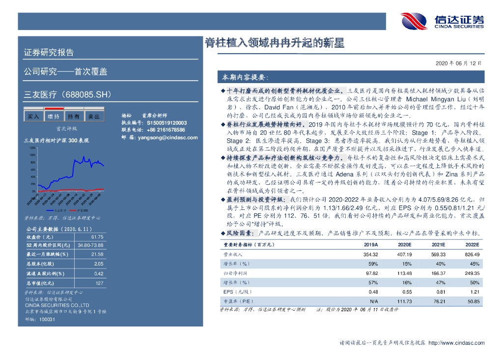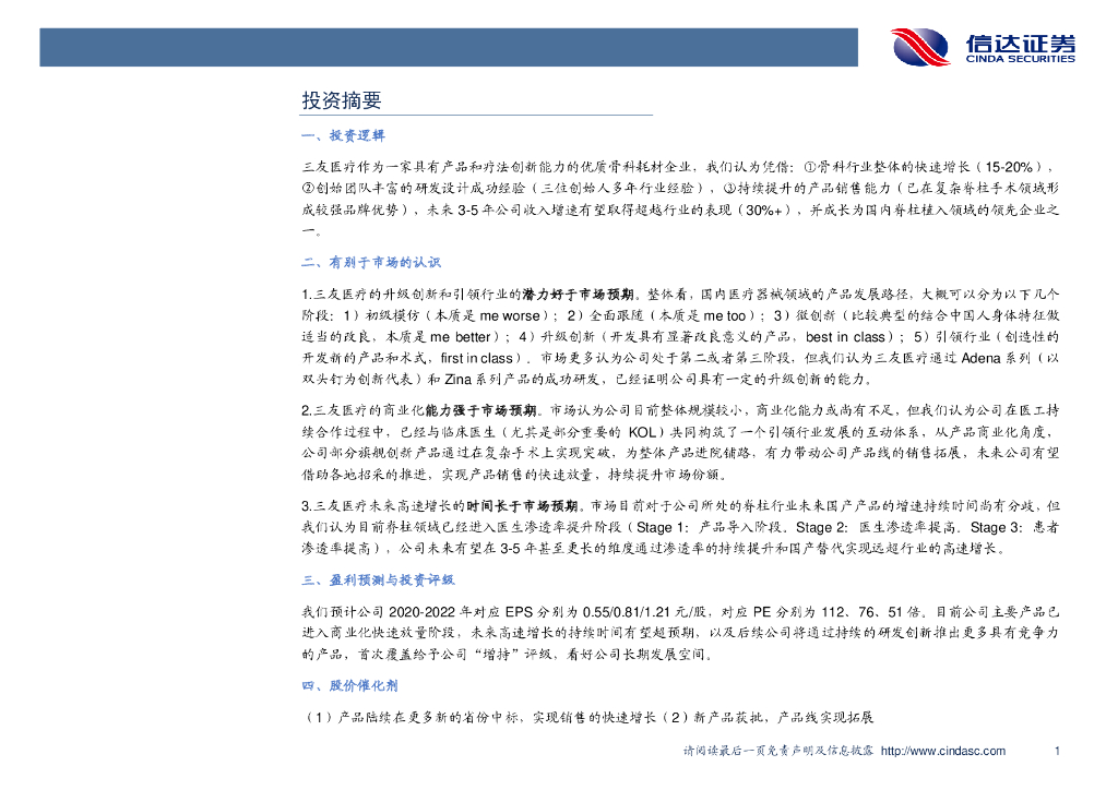 信达证券:三友医疗(688085)-深度报告:脊柱植入领域冉冉升起的新星.pdf