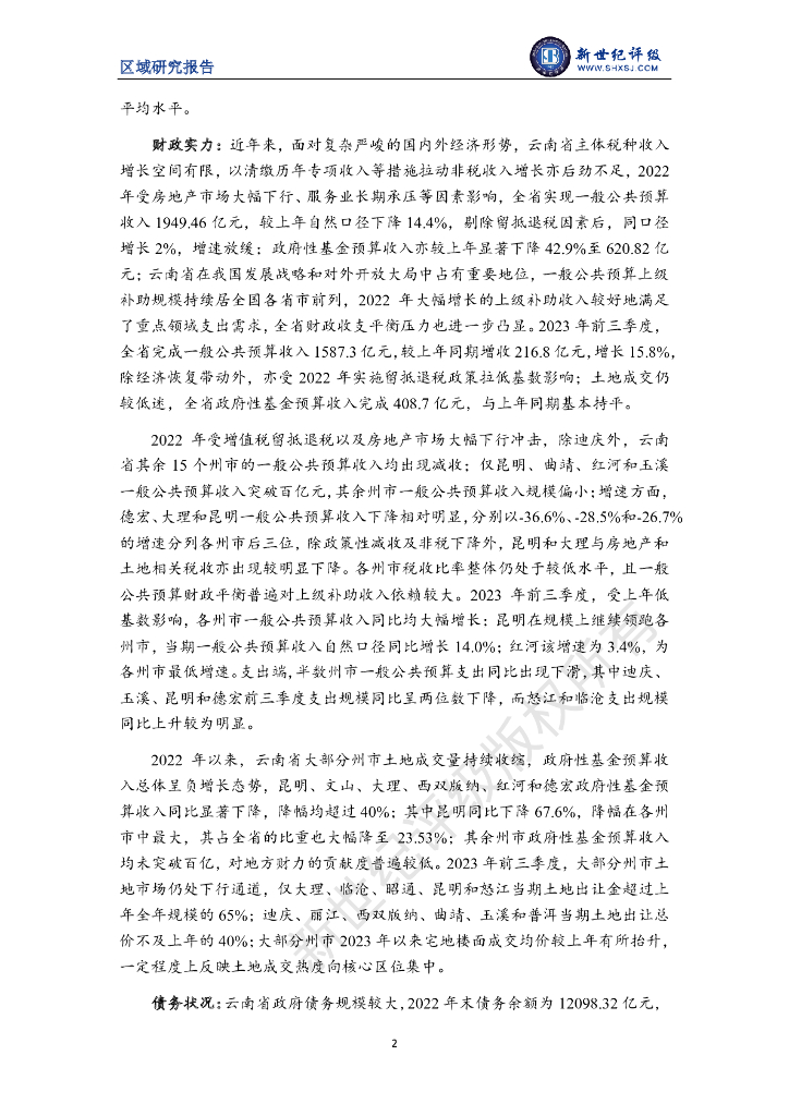 新世纪评级:云南省及下辖各州市经济财政实力与债务研究报告(2023).pdf