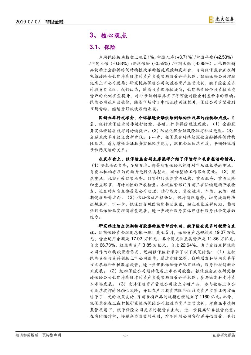 光大证券:非银行金融行业周报 :保险强于券商,科创板风云渐起.pdf
