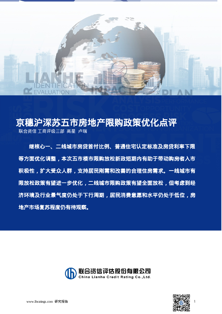 联合资信:房地产行业:京穗沪深苏五市房地产限购政策优化点评.doc