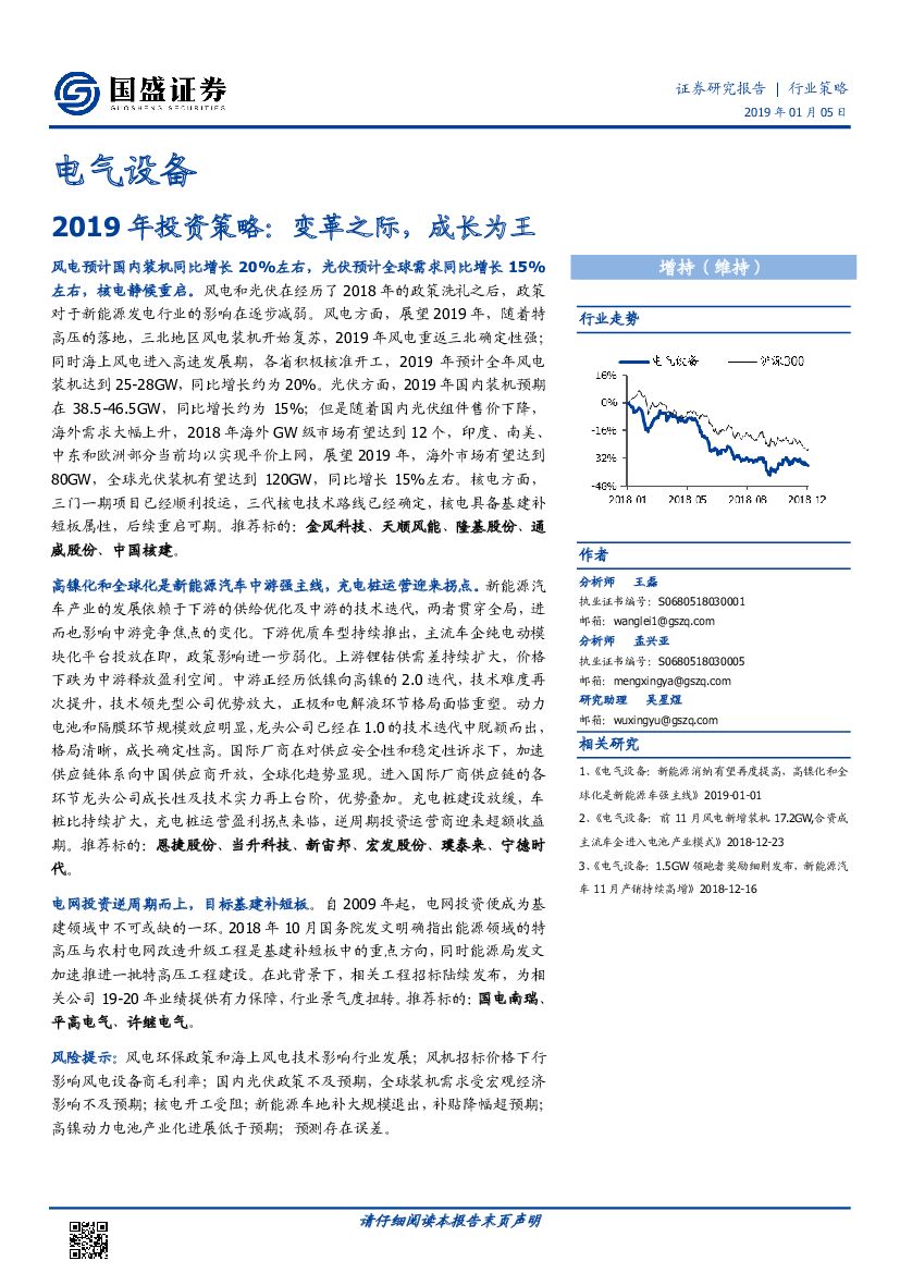 国盛证券:电气设备2019年投资策略:变革之际,成长为王.pdf