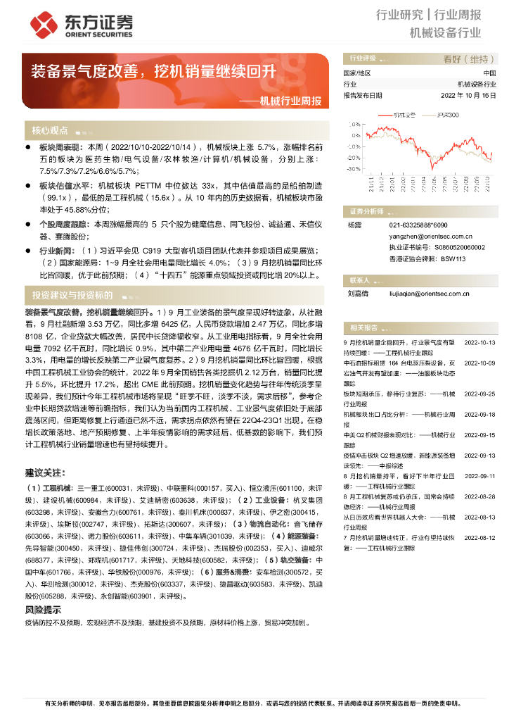 东方证券:机械行业周报:装备景气度改善,挖机销量继续回升.pdf