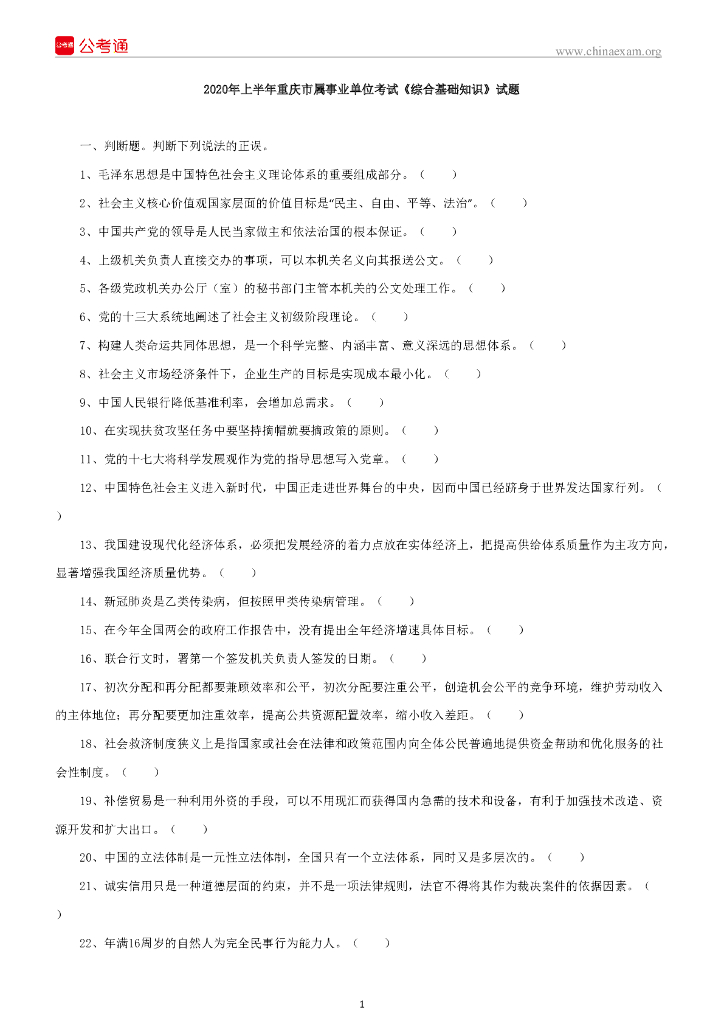 2020年上半年重庆市属事业单位考试《综合基础知识》试题.pdf