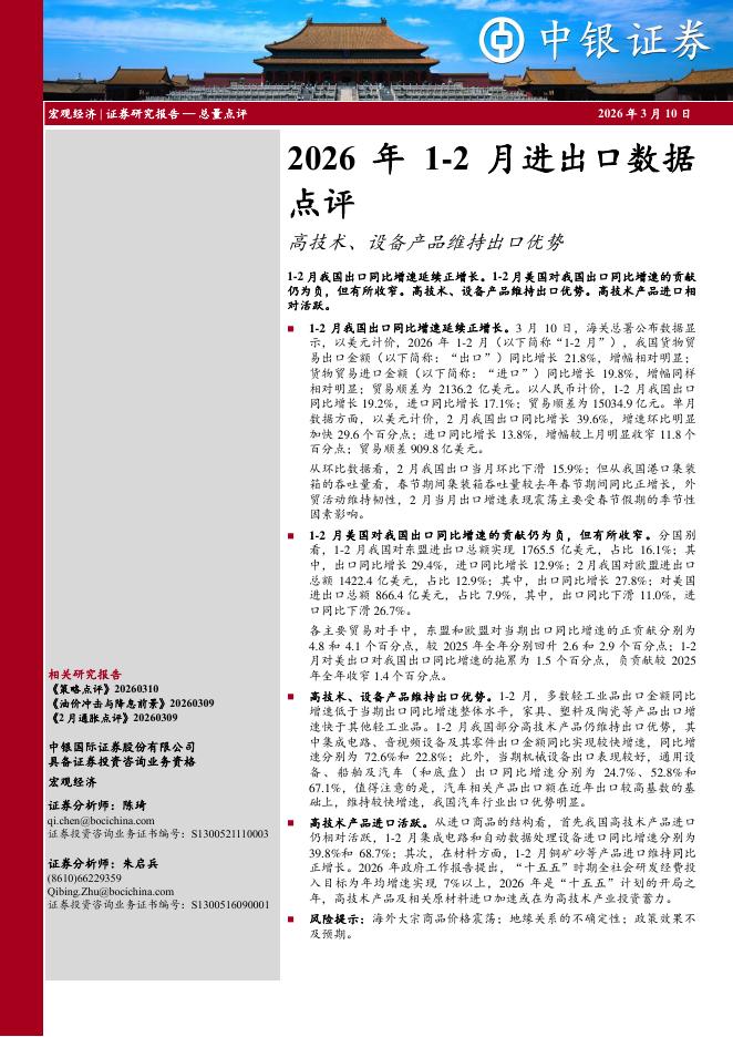 中银证券:2026年1-2月进出口数据点评:高技术、设备产品维持出口优势-260310.pdf