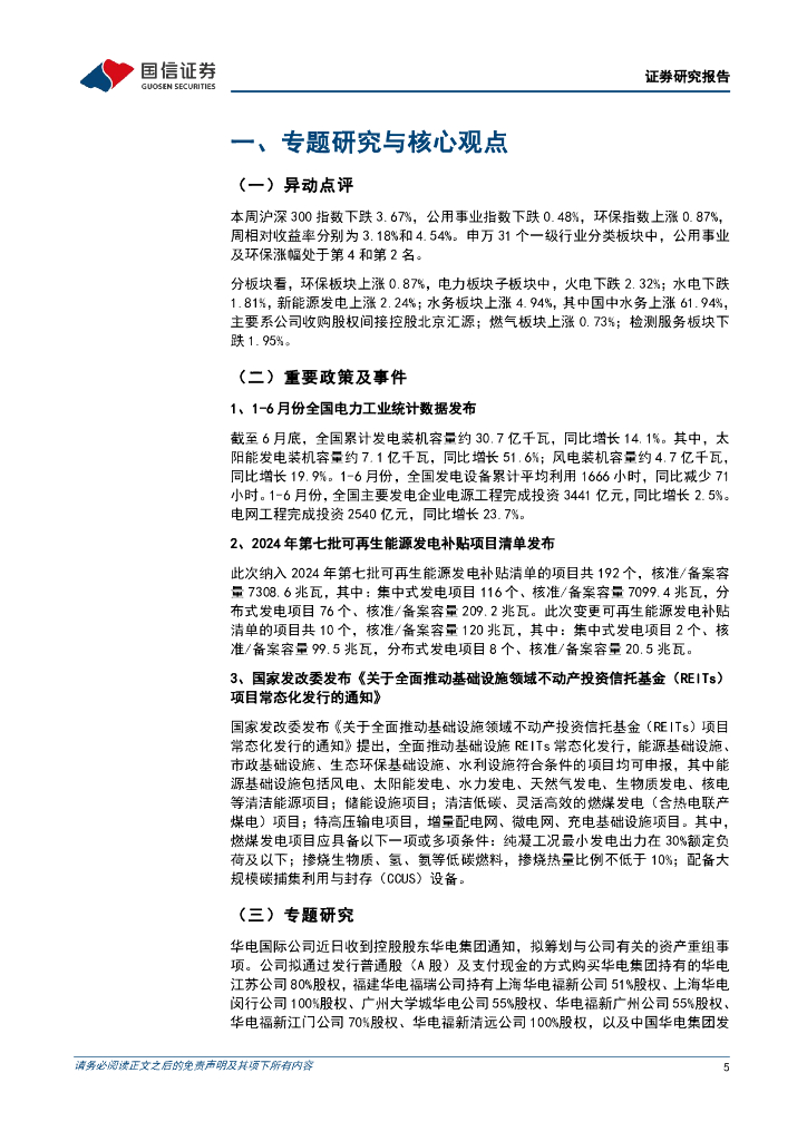 国信证券:公用环保202407第4期:1-6月全国发电装机容量同比+14.1%,REITs项目常态化发行推进.pdf