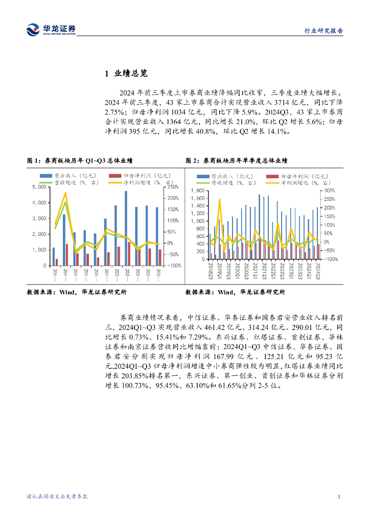 华龙证券:证券行业2024年三季报综述:自营收益率回升,市场+政策望拉动券商业绩估值双增.pdf