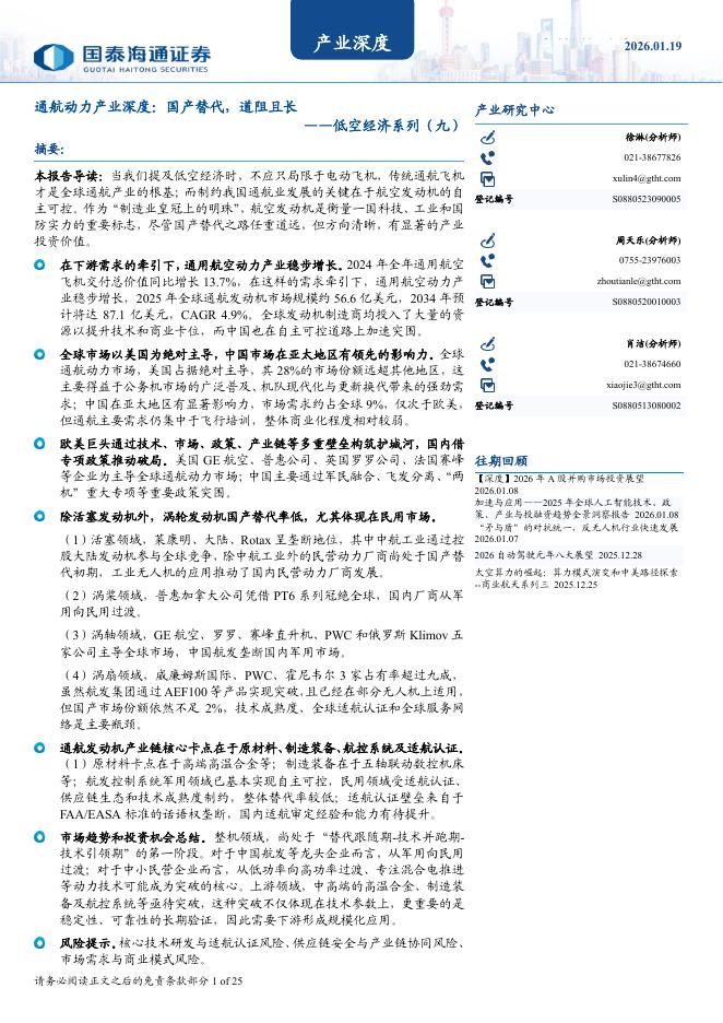国泰海通证券:低空经济系列(九):通航动力产业深度:国产替代,道阻且长.pdf