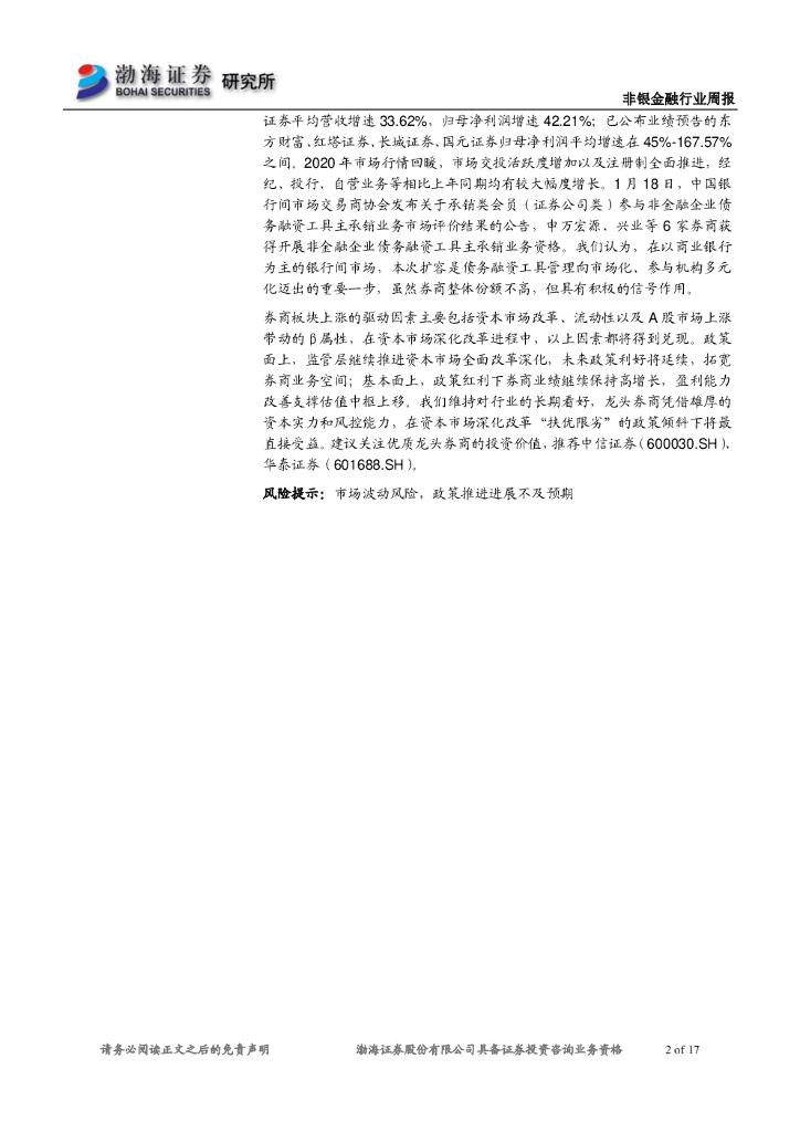 渤海证券:非银金融行业周报:业绩陆续发布,关注基本面支撑下券商投资价值.pdf