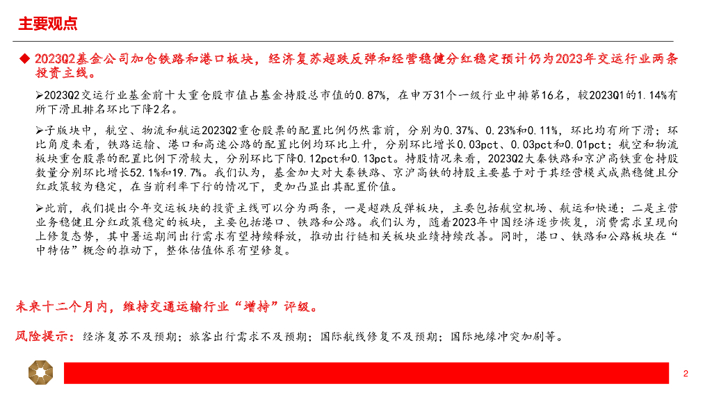 上海证券:交通运输行业2023Q2基金持仓分析.pdf