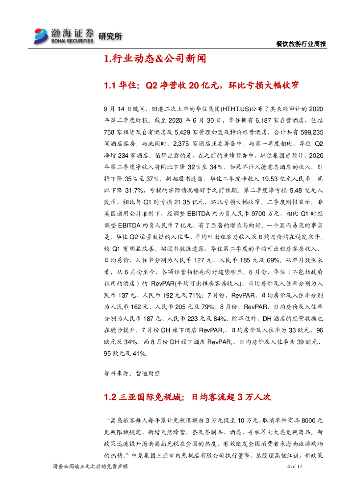 渤海证券:餐饮旅游行业周报:华住Q2亏损环比收窄 去哪儿预测十一民航出行创新高.pdf