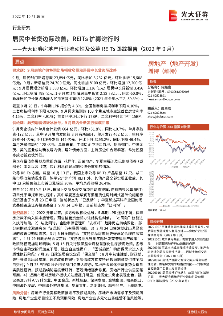光大证券:房地产行业流动性及公募REITs跟踪报告(2022年9月):居民中长贷边际改善,REITs扩募进行时.pdf