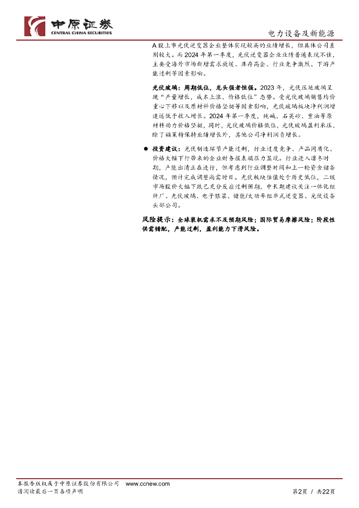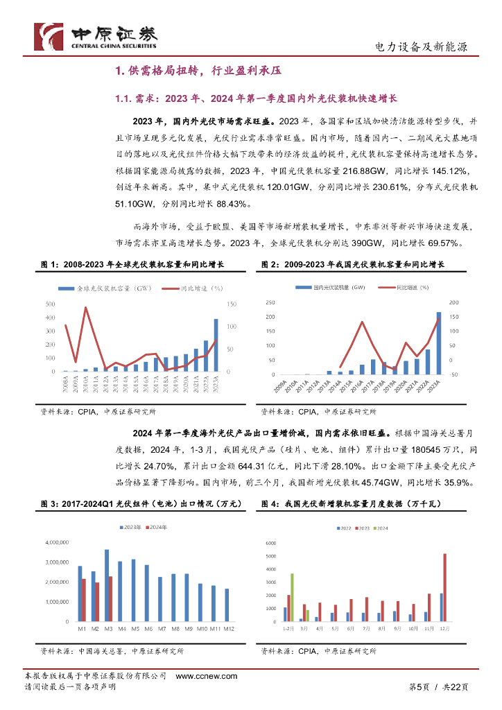 中原证券:光伏行业2023年年报和2024年第一季度报告总结:行业盈利承压,静待市场出清.pdf