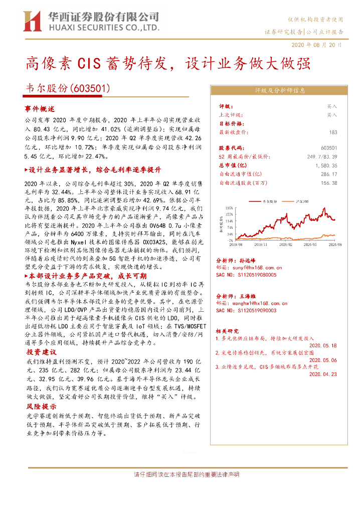 华西证券:韦尔股份(603501)-高像素CIS蓄势待发,设计业务做大做强.pdf
