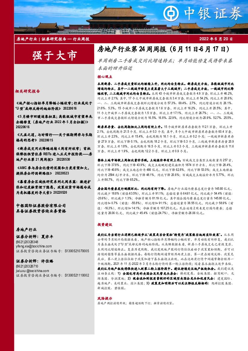 中银证券:房地产行业第24周周报:单周新房二手房成交同比增速转正;单月动能修复或将带来基本面的回升临近.pdf