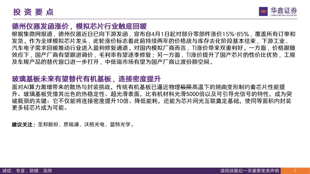 华鑫证券:半导体行业周报:德州仪器发函涨价,玻璃基板有望成为发展趋势.pdf