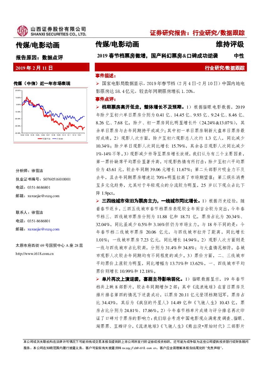 山西证券:传媒/电影动画:2019春节档票房微增,国产科幻票房&口碑成功逆袭.pdf
