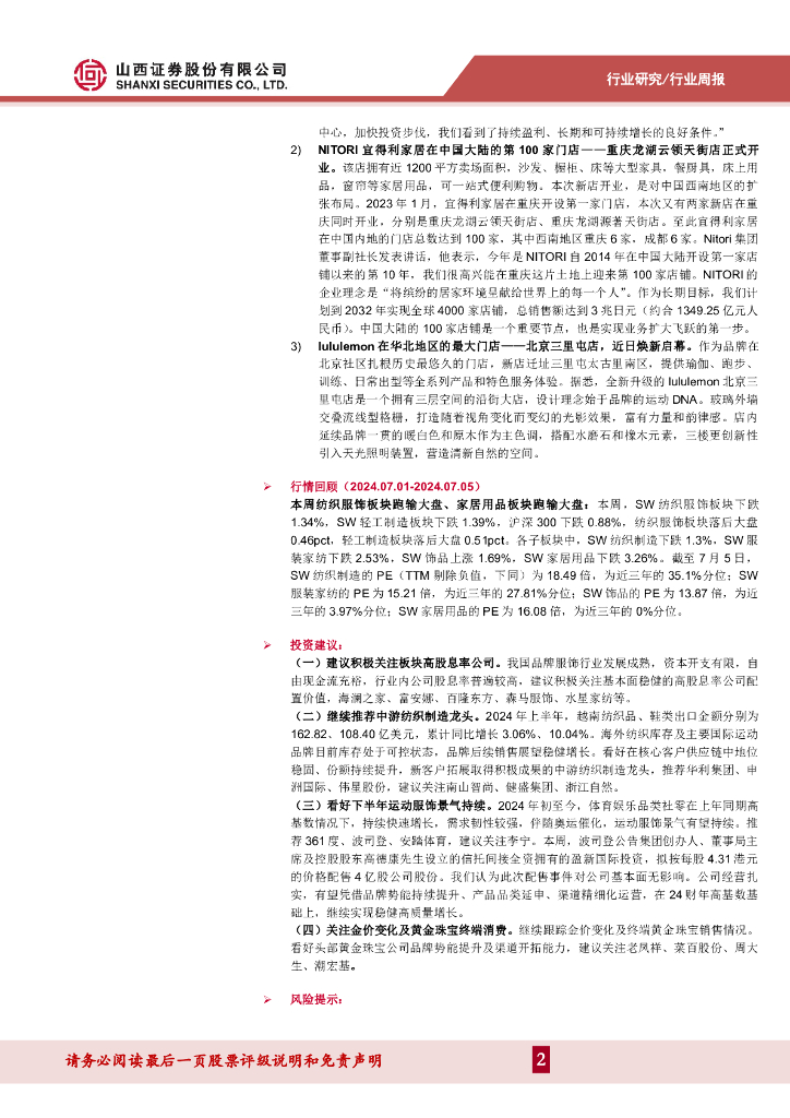 山西证券:纺织服装行业周报:2024H1越南鞋类出口同比增长10%,配售不改波司登长期经营趋势.pdf