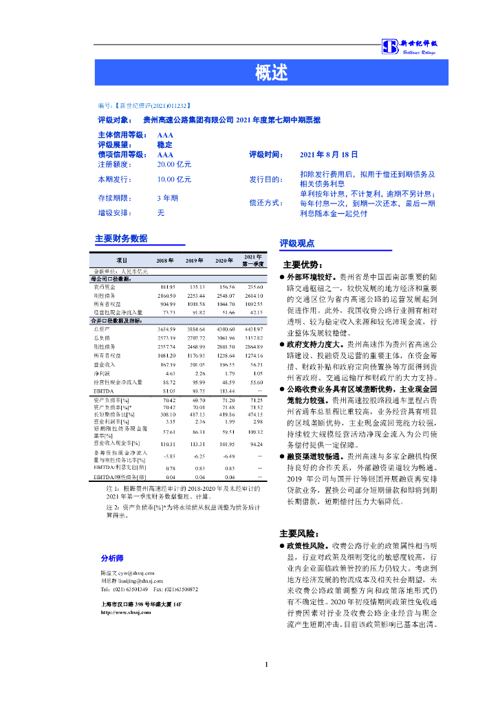 新世纪:贵州高速公路集团有限公司2021年度第七期中期票据信用评级报告.pdf
