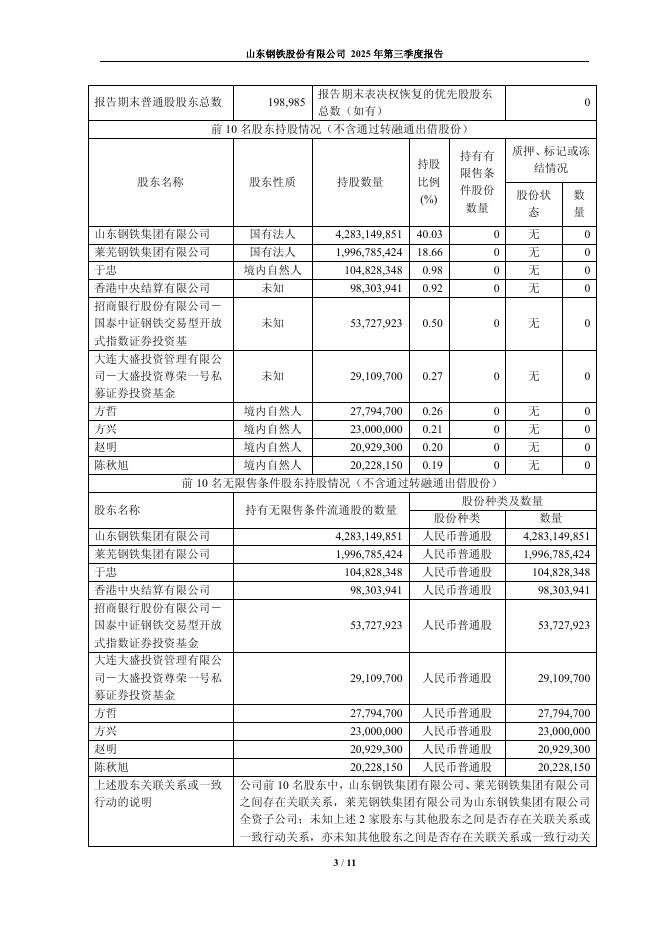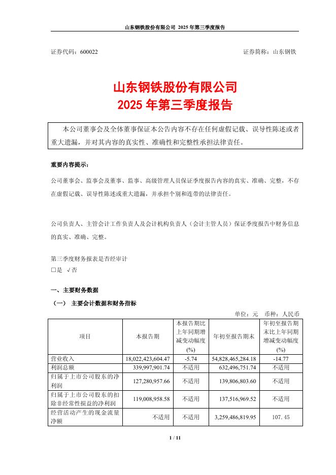 600022-山东钢铁:山东钢铁股份有限公司2025年第三季度报告.pdf