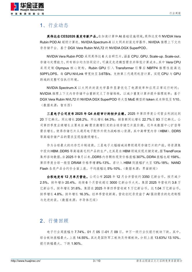 华金证券:电子行业周报:AI&半导体:英伟达发布VeraRubin平台.pdf
