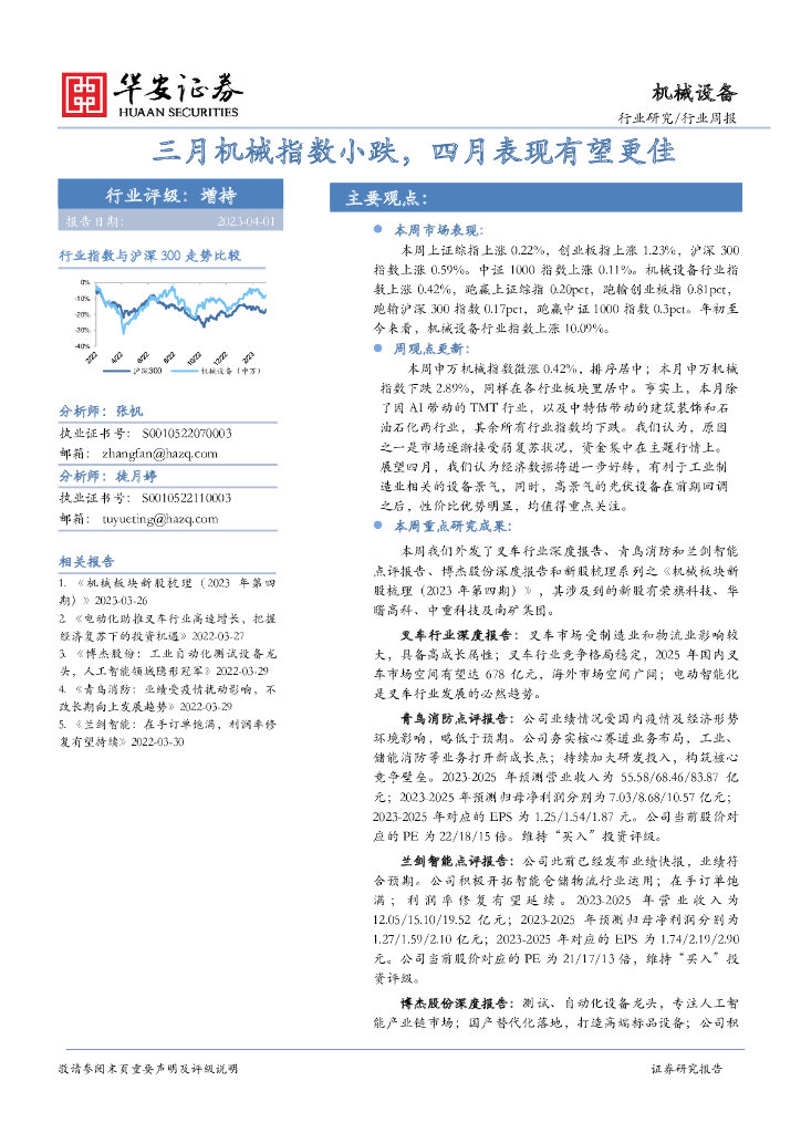 华安证券:机械设备行业周报:三月机械指数小跌,四月表现有望更佳.pdf