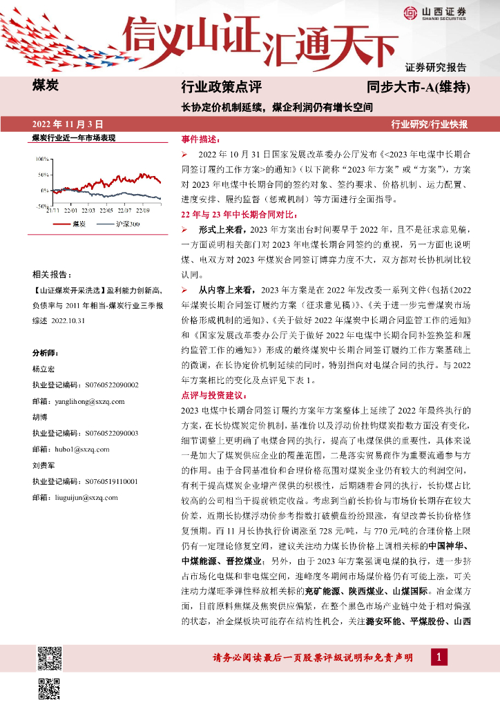 山西证券:煤炭行业政策点评:长协定价机制延续,煤企利润仍有增长空间.pdf
