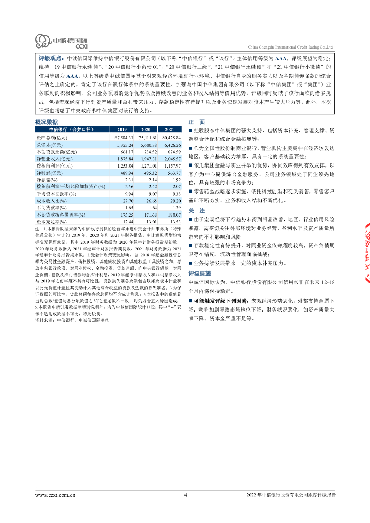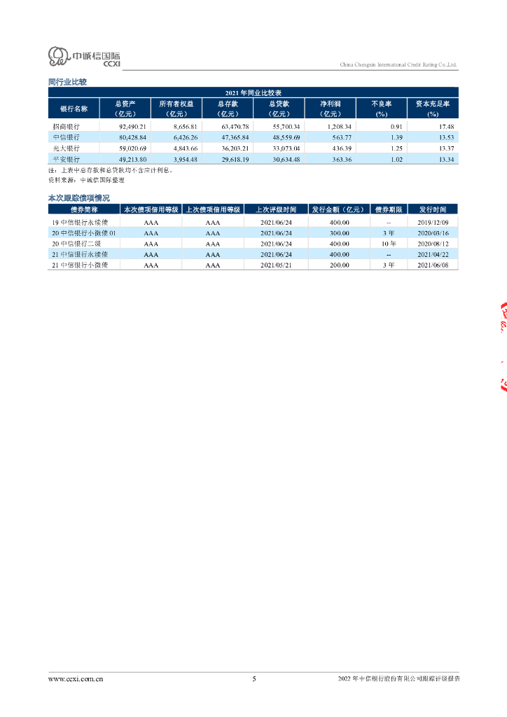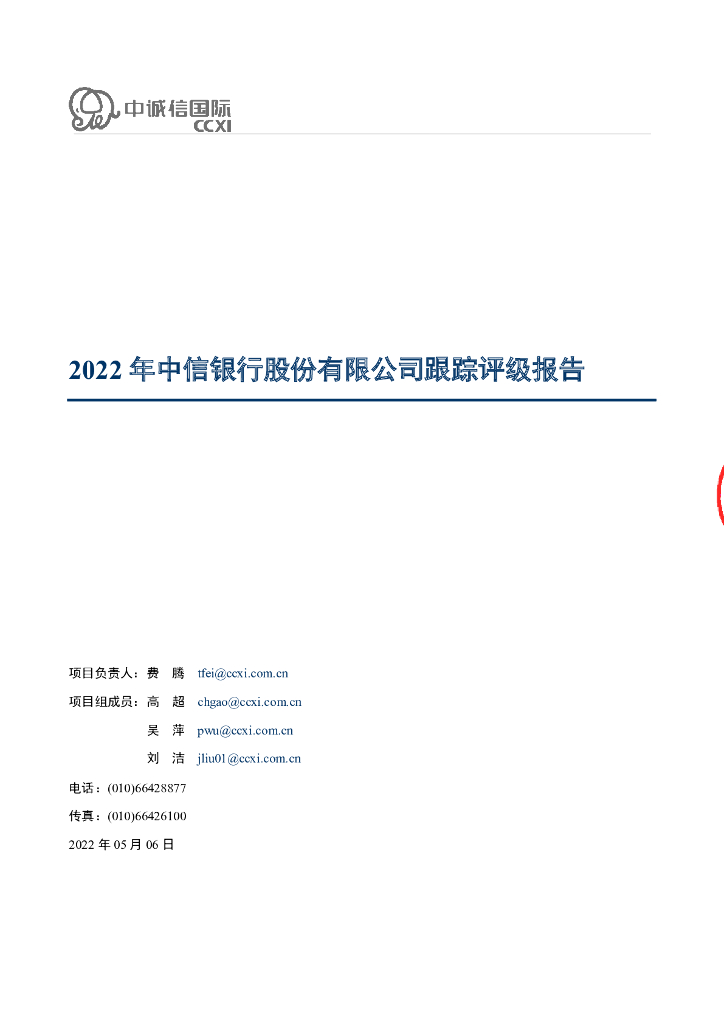 中诚信:2022年中信银行股份有限公司跟踪评级报告.pdf
