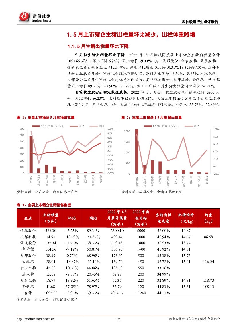 浙商证券:农林牧渔5月上市猪企销售数据点评:猪企出栏减量,肥猪价涨重增.pdf
