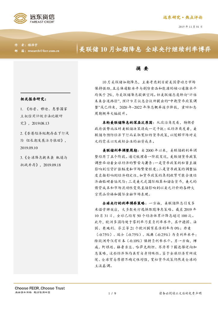 远东资信:美联储10月如期降息 全球央行继续利率博弈.pdf