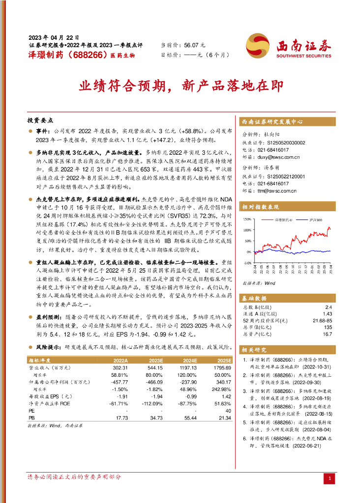 西南证券:泽璟制药(688266)-业绩符合预期,新产品落地在即.pdf
