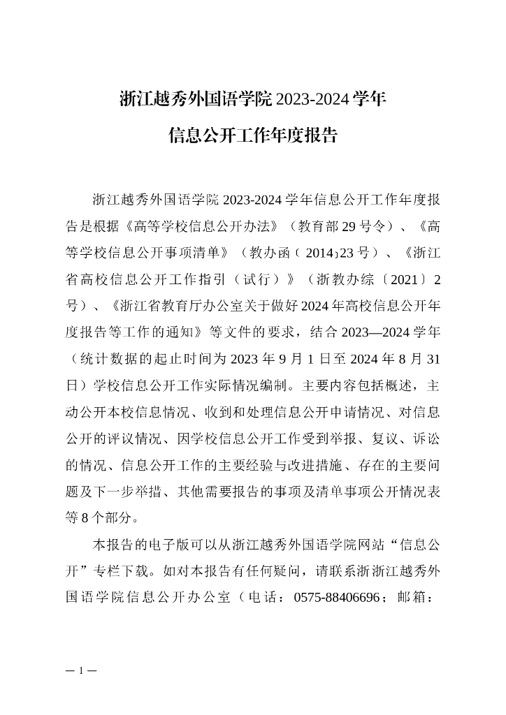 浙江越秀外国语学院2023-2024学年信息公开工作年度报告(2024年).doc