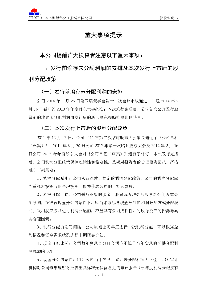 江苏七洲绿色化工股份有限公司深交所主板IPO上市招股说明书.pdf