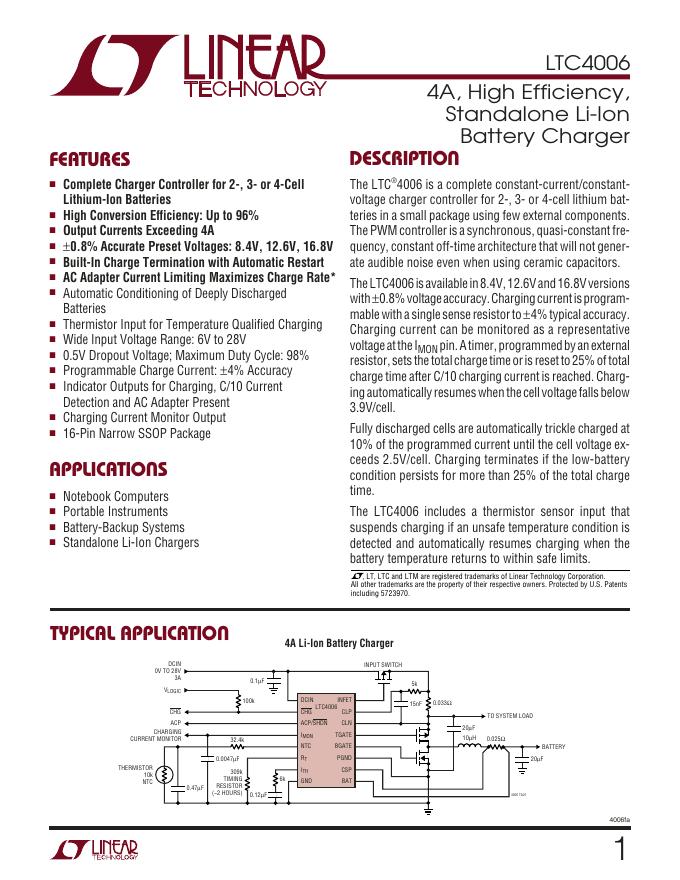 LINEAR TECHNOLOGY - 1 LTC4006 数据手册.pdf